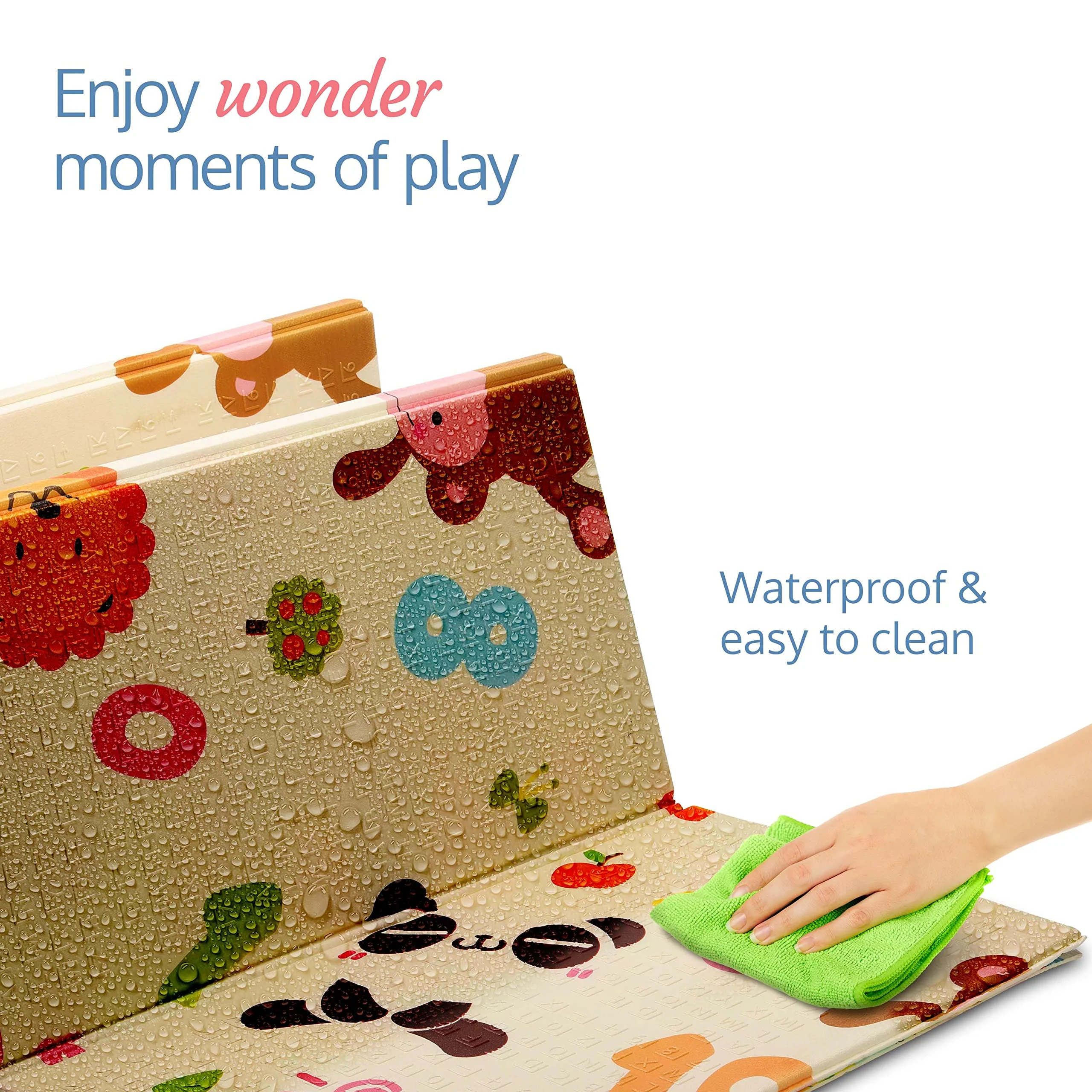- Waterproof & Easy to Clean: Additionally, the mat is designed with a durable waterproof layer that resists spills, milk, and stains. Therefore, you can simply wipe it with a damp cloth to keep it fresh and hygienic, making it perfect for everyday baby use.