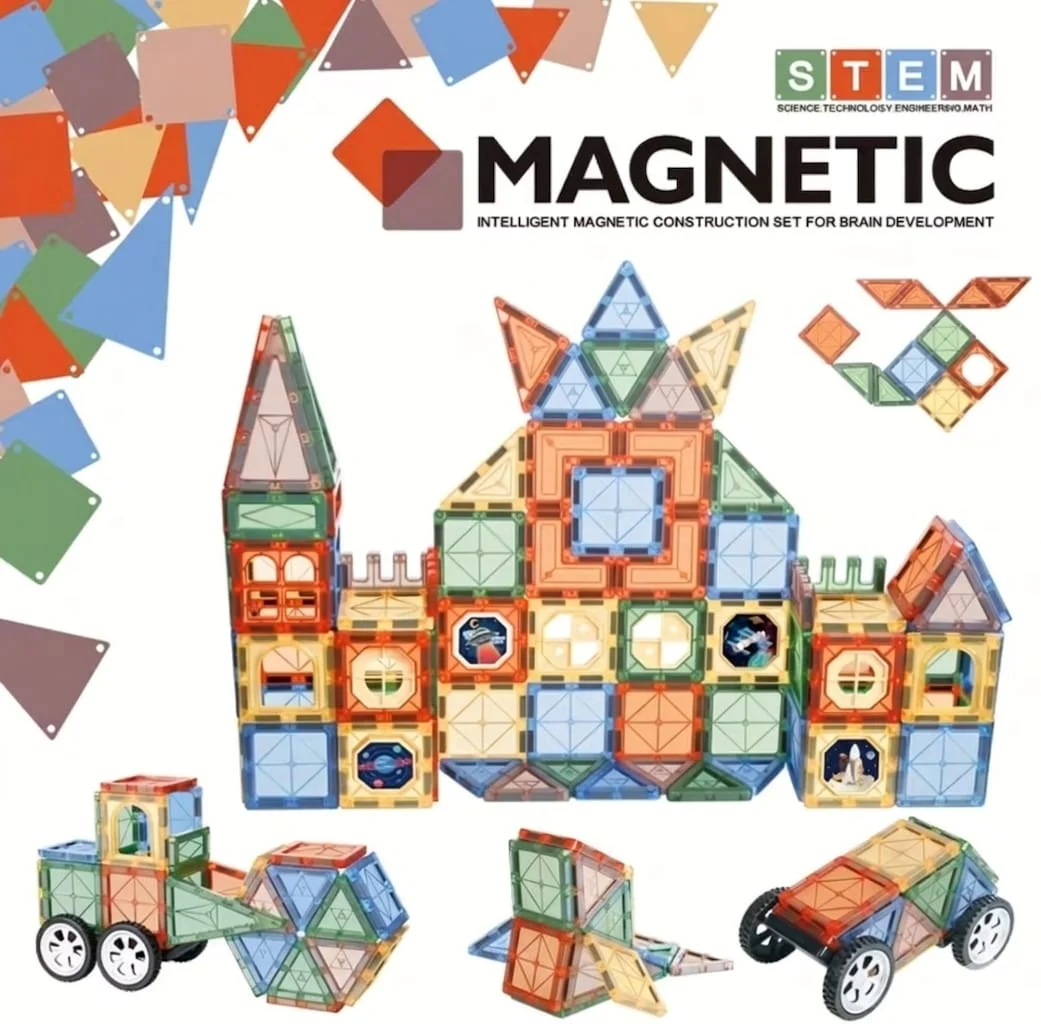 Magnetic Tiles Toys for Kids – Preschool STEM set that sparks creativity, enhances problem-solving, and encourages hands-on learning through building colorful 2D and 3D structures.